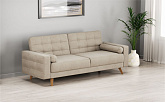 Диван Лакк выполнен в скандинавском стиле: лаконичные формы, опоры из натурального дерева, аккуратные утяжки на спинке и подлокотниках.